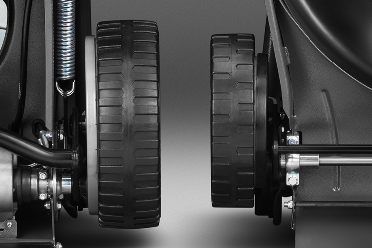 - Самоходные: движутся при помощи привода; оператор только направляет газонокосилку. Это удобно для работы на больших площадях и для владельцев, которым сложно прикладывать физические усилия. Возможны передний, задний или полный привод (задний/полный — лучше для неровностей).