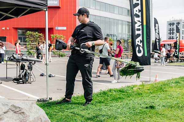 Особое внимание гостей привлекла коллекция первой профессиональной аккумуляторной садовой техники 60В с ранцевой батареей, выведенная на рынок в юбилейном году. CAIMAN ENO включает в себя самоходные газонокосилки, триммеры, работающие с леской и дисками, ножницы для ухода за живыми изгородями, воздуходувки и цепные пилы. Оборудование отличается надежностью и производительностью, высокой мощностью при малом весе, а также низкой вибрацией.