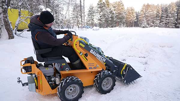ML-02 мы испытывали с ковшом. Машина свою работу выполняет, хотя чувствуется, что нагрузка была тоже очень серьёзной. Логично предположить, что гусеничная ML-03 вгрызалась бы в сугроб чуть лучше благодаря большей тяге и чуть большему весу. Но и ML-02 оказалась достаточно эффективной.