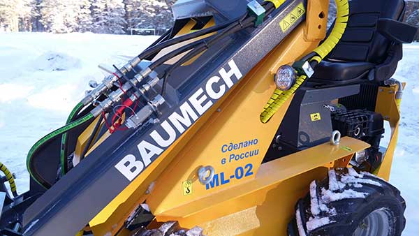 Собственно, машины Baumech уже заслужили неофициальное звание «российских Бобкэтов», потому что изготавливают их в Новосибирске. Импортные детали – двигатель и гидронасос, так что говорить о российском производстве здесь совершенно уместно, степень локализации очень значимая. Да, по характеристикам эти машины с погрузчиком Bobcat не сравнятся, в частности, высота погрузки при работе с ковшом у них ниже. Но зато и стоят они примерно вдвое дешевле. Зато универсальность у них превосходная, к ним выпускается около 50 моделей различной навески. И не только самой востребованной, к какой относятся, например, ковши, отвалы, подметальные щётки и снегоуборщики, но и достаточно редкой – есть, например, даже пересаживатели деревьев. А также гидровращатели для бурения ям, экскаваторные ковши, траншеекопатели… можно уверенно утверждать, что это и в самом деле абсолютно универсальные машины.