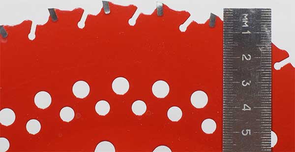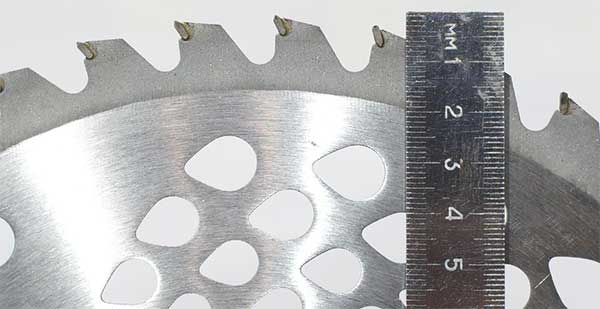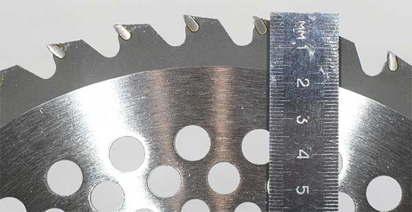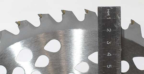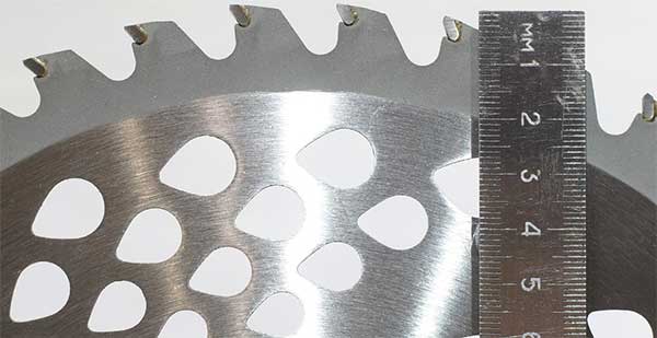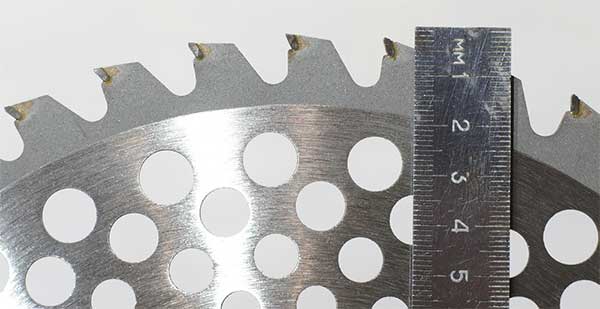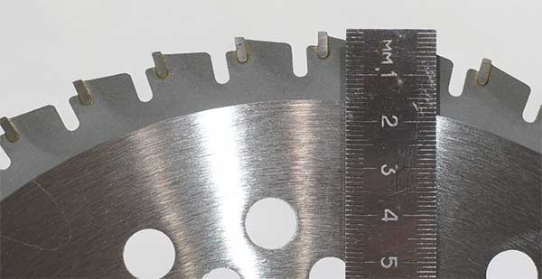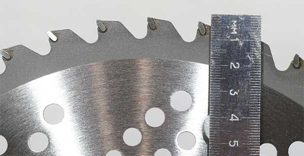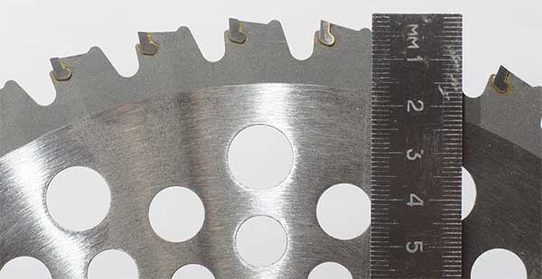 Мы с этими дисками сталкивались неоднократно в ходе других тестов, поэтому по ним у нас есть дополнительная информация, помимо той, что доступна на упаковке. Тело дисков изготовлено из японской углеродистой инструментальной стали SK5, которая известна в первую очередь своей прочностью. Ещё она хорошо держит заточку, но в данном случае это не принципиальная особенность, потому что режут напайки. Сталь SK5 имеет хорошие пружинящие свойства, это позволяет компенсировать ударные нагрузки, приходящиеся на зубья. Этому также способствует особый режим закаливания.