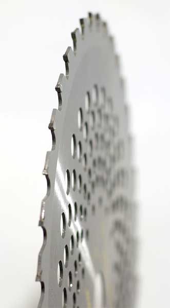 При изготовлении дисков используется сталь двух марок: 65Mn и S50C. Твердосплавные зубья изготовлены из сплава карбида вольфрама (92%) и кобальта (8%). Соединение твердосплавных сегментов и полотна ножа происходит методом сварки токами высокой частоты. В состав припоя входит 2% серебра.