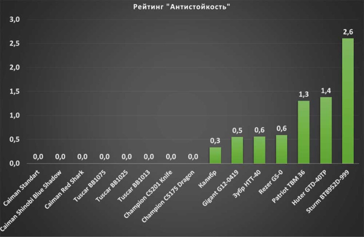 «Анти» – не для того, чтобы как-то дискредитировать участников, а чтобы сразу же акцентировать внимание на том моменте, что результат тем лучше, чем ниже значение. Идеальный вариант – ноль. Чем выше величина, тем ниже стойкость диска к ударным нагрузкам.