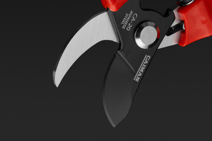 Для производства секаторов CAIMAN используются только самые качественные материалы и передовые технологии. В первую очередь это сталь: она должна обладать высокой твердостью, чтобы обеспечить стойкость к истиранию и затуплению, длительный срок службы лезвий. В то же время она должна быть достаточно упругой, чтобы гарантировать прочность на излом. Всем требуемым условиям соответствует японская сталь с высоким содержанием углерода, которая применяется для инструмента CAIMAN. 59 HRC по шкале Роквелла – это превосходный уровень твердости, чтобы долго сохранять остроту и стойкость к износу, и одновременно обеспечить нужный уровень эластичности, чтобы исключить хрупкость при различных воздействиях.